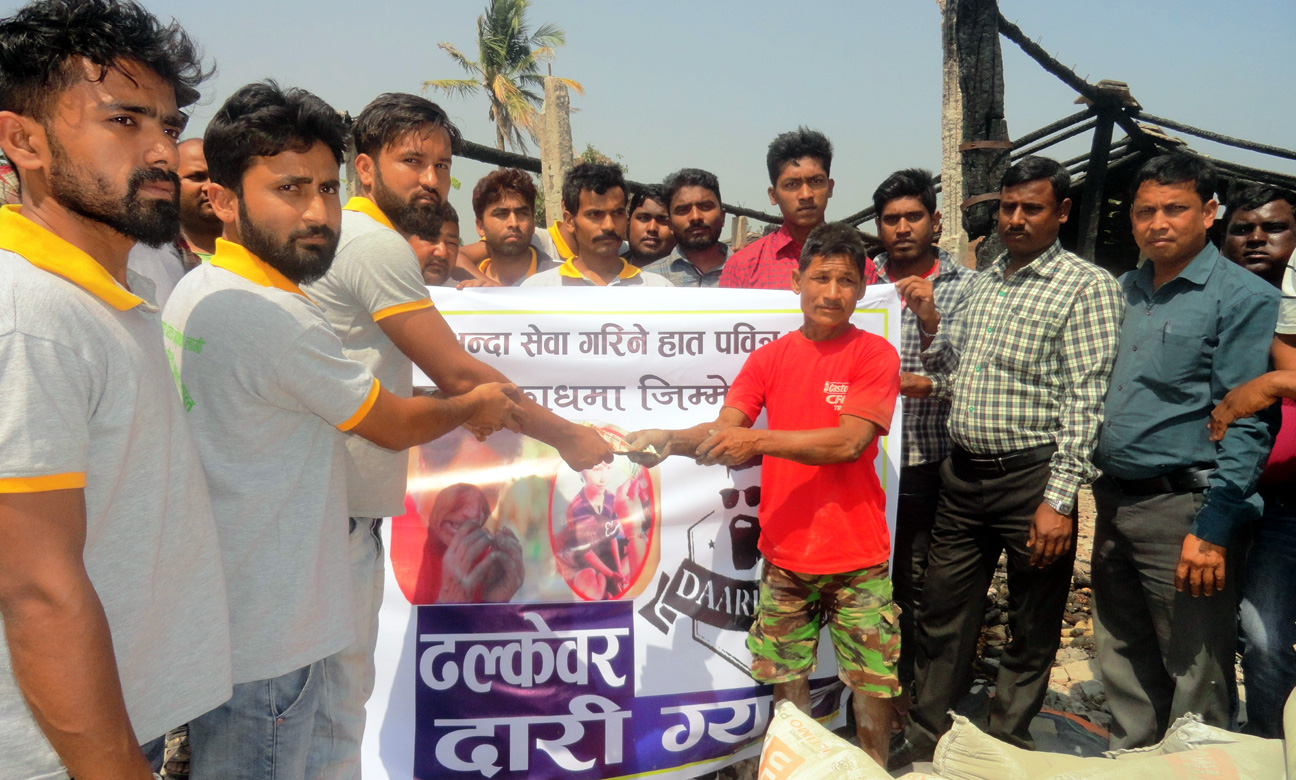 धनुषाको ढल्केवरस्थित दारी ग्याङ्गले रेश्मा घर निर्माण अभियान अन्र्तगत शनिवार पीडित परिवारलाई नगद र घर निर्माण सामग्री सहयोग गरेका हुन् ।