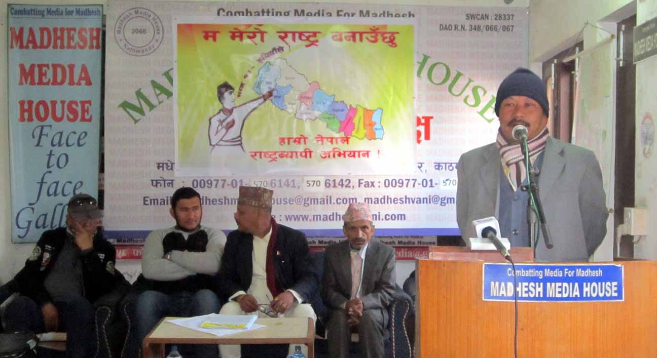 हाम्रो नेपाल राष्ट्रव्यापी अभियानले बुधबार मधेश मिडिया हाउसमा पत्रकार सम्मेलन गरी ‘म मेरो राष्ट्र बनाउँछु मात्र १ रुपैयाँले’ राष्ट्रव्यापी अभियान घोषणा गरिएको छ ।
