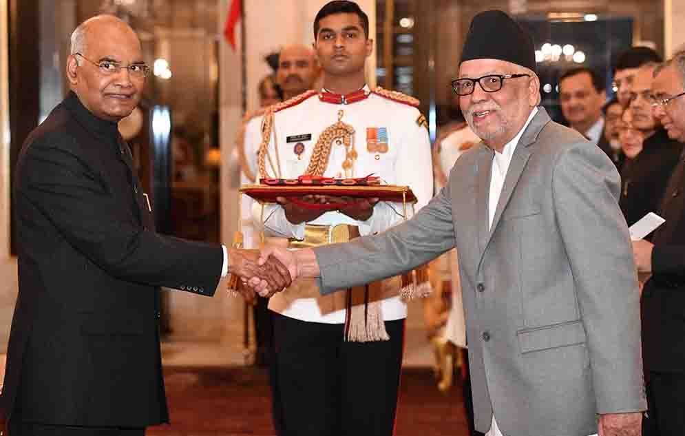 काठमाडौं, ३० फागुन । भारतका लागि नवनियुक्त राजदूत निलाम्बर आचार्यले भारतका राष्ट्रपति रामनाथ कोविन्दसमक्ष आफ्नो ओहदाको प्रमाणपत्र (क्रिडेन्सिअल) बुझाएका छन् ।