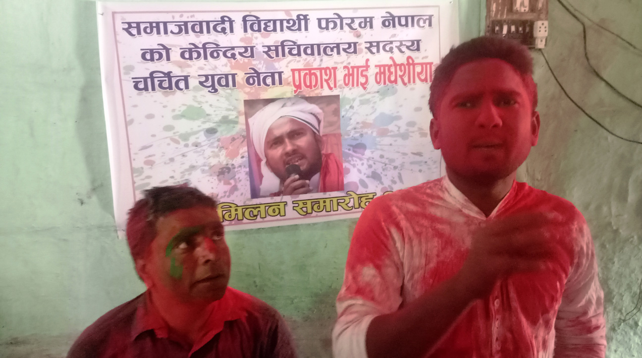 राकेश यादव, रौतहट, ६ चैत । समाजवादी विद्यार्थी फोरम नेपालका केन्द्रीय सचिवालय सदस्य युवा नेता प्रकाश भाई मधेशियाले फागु पर्व सौहार्दपूर्ण वातावरणमा मनाउन सबैमा आग्रह गरेका छन् ।
