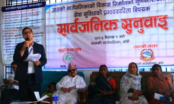 नेपालगञ्ज । पाँचबुँदे सार्वजनिक प्रतिबद्धताका साथ जानकी गाउँपालिकाले सार्वजनिक सुनुवाई कार्यक्रम सम्पन्न गरेको छ ।