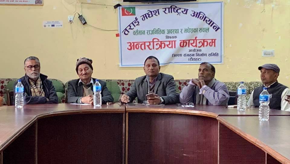 कार्यक्रममा उपस्थिति नागरिक अगुवा तथा नेताहरुले आज पर्यन्तको मधेश आन्दोलनहरूले उठाएको अधिकारका मुद्दाहरू संविधानमा समाविष्ट हुन नसकेको विचार व्यक्त गरेका थिए ।
