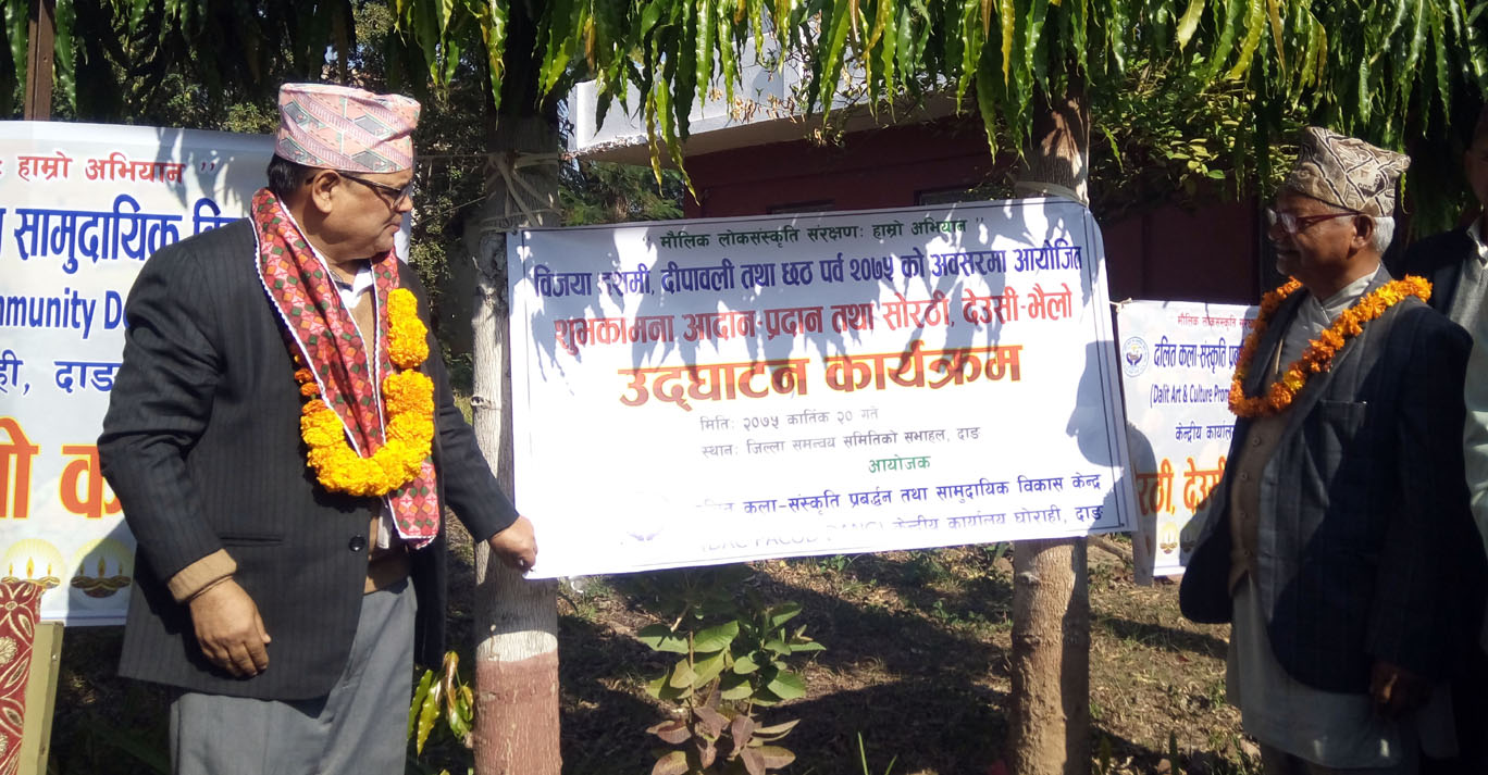 दलित कला, संस्कृति प्रवद्र्धन तथा सामुदायिक विकास केन्द्रले दाङमा आयोजना गरेको सोरठी देउसी भैलो कार्यक्रमको उद्घाटन गर्दै उनले भने, “विदेशी संस्कृतिका कारण नेपाली संस्कृति समस्यामा परेको छ ।”