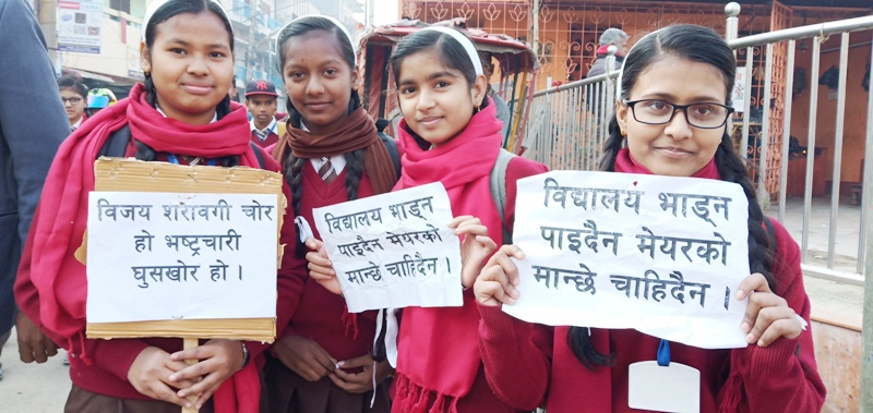 विद्यार्थी र विद्यालय का शिक्षक, शिक्षिका र व्यवस्थापक समितिले वीरगंज महानरगपालिकाका मेयर विजय सरावगीको विरुद्धमा नाराबाजी गरिएको थियो ।