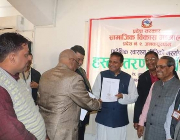 जनकपुरधाम, १ फागुन । प्रदेशको स्वास्थ्य नीति बनाउन सरकारले गठन गरेको कार्यदलले आफ्नो मस्यौदा सरकारलाई बुझाएको छ ।