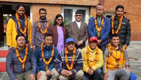 काठमाडौं, २७ चैत । प्रधानमन्त्री केपी शर्मा ओलीले सगरमाथाको उचाइ नाप्न जान लागेको कर्मचारीको टोलीलाई विदाइ गरेका छन् ।
