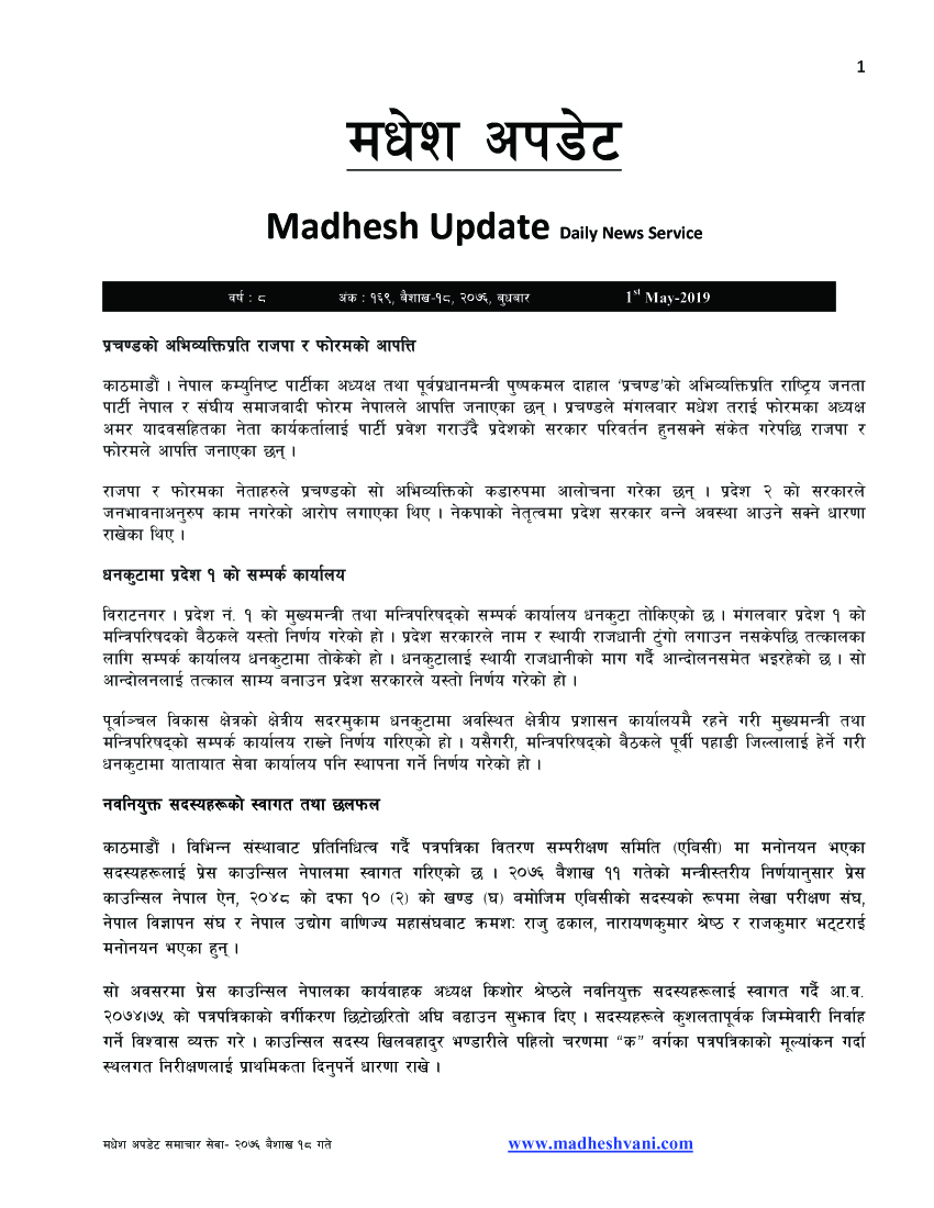 Madhesh Update, 1-May-2019, 18-1-2076