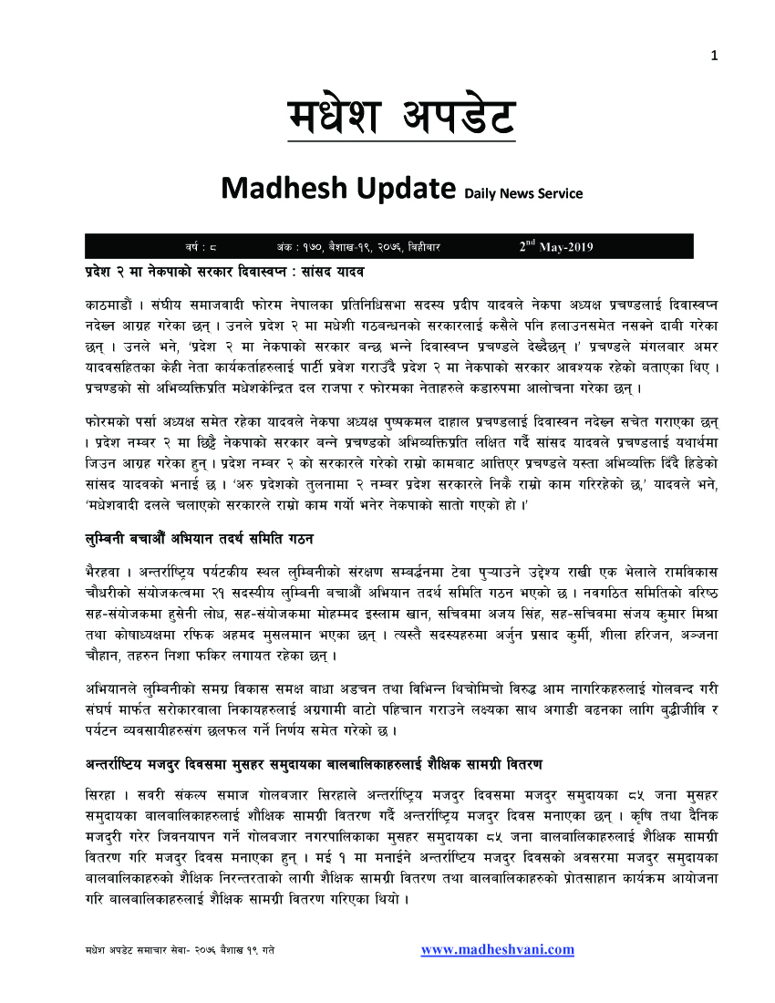 Madhesh Update, 2-May-2019, 19-1-2076
