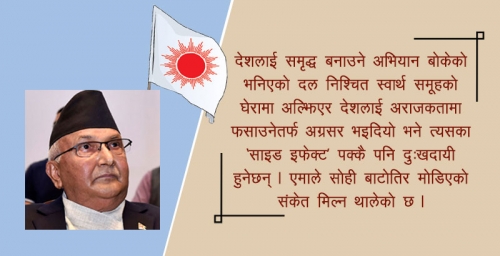 मधेशी दल असफल भए सीके राउतको राजनीति सफल हुनसक्छ । सरकार एव नेकपाको राजनीति असफल भए विप्लवको राजनीति सफल हुनसक्छ । यो दुवै अवस्थामा नेपालको हित र स्वार्थको रक्षा हुनसक्दैन ।