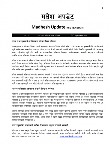 Madhaesh Update 13-September-2019, 27-5-2076
