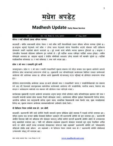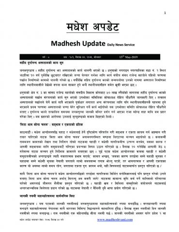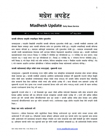 Madhesh Update, 14-May-2019, 31-1-2076