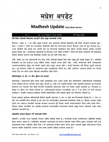 Madhesh Update, 12-May-2019, 29-1-2076