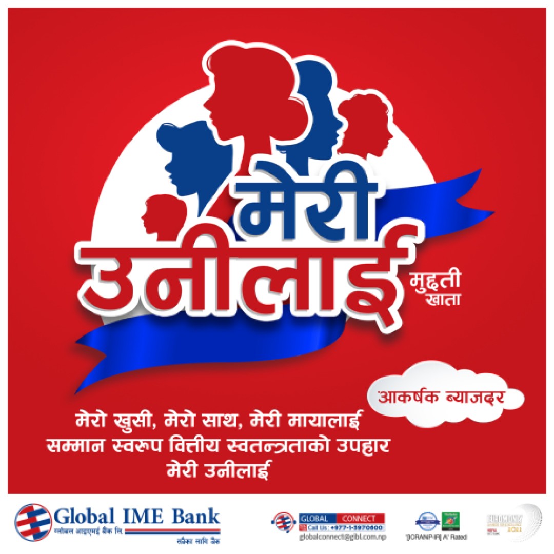 काठमाडौं, २५ माघ । ग्लोबल आइएमई बैंकले नयाँ विशेषताका साथ ‘मेरी उनीलाई’ मुद्धती खाता योजना ल्याएको छ । हाल कायम ‘मेरी उनीलाई’ मुद्धती खातालाई परिमार्जन गरी यो योजना संचालनमा ल्याइएको हो ।