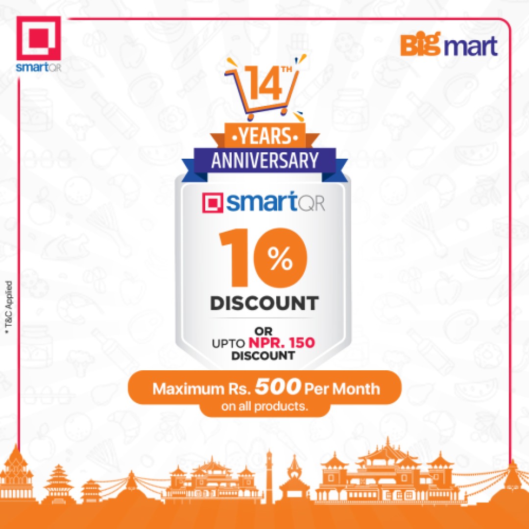 स्मार्ट क्युआरमा आवद्ध विभिन्न बैंक तथा वित्तिय संस्थाका ग्राहकहरुले बिग मार्टको सम्पूर्ण शाखाहरुमा क्युआर स्क्यान गरि भुक्तानी छुट प्राप्त गर्न सक्ने छन् ।