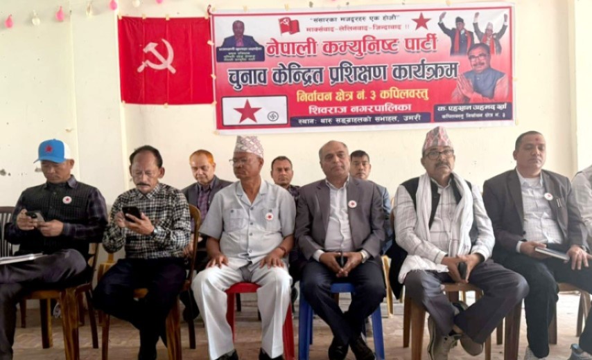 इमरान खान, कपिलवस्तु । कपिलवस्तु जिल्लाको शिवराज नगरपालिका–१ उमरीमा नेपाली कम्युनिस्ट पार्टीको आयोजनामा चुनाव केन्द्रित प्रशिक्षण कार्यक्रम सम्पन्न भएको छ । कार्यक्रममा पार्टीका नेता तथा कार्यकर्ताहरूको उल्लेखनीय सहभागिता रहेको थियो।