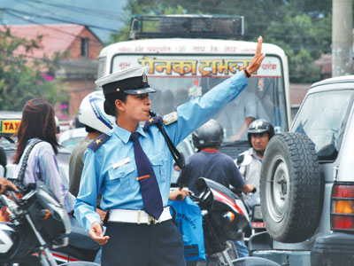 काठमाडौँ : न धुलो, न धुवाँ, न घाम, न पानी सवारी व्यवस्थापनमै बित्दैछ ट्राफिक प्रहरीको जिन्दगानी ।