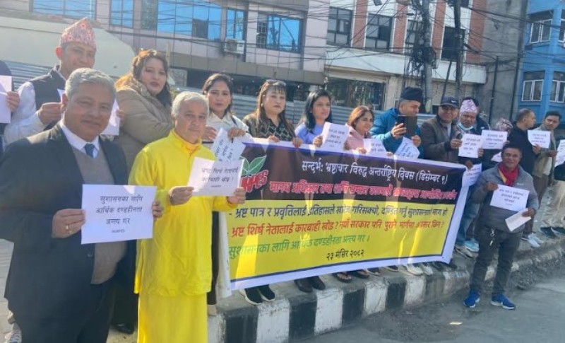 काठमाडौं । भ्रष्टाचार विरुद्ध अन्तराष्ट्रिय दिवस ९ डिसेम्वर मंसिर २३ गतेका दिन मानव अधिकार तथा शान्ति समाजले विभिन्न जिल्लामा प्रदर्शन गरेको छ ।
